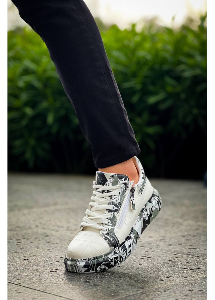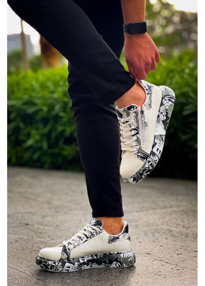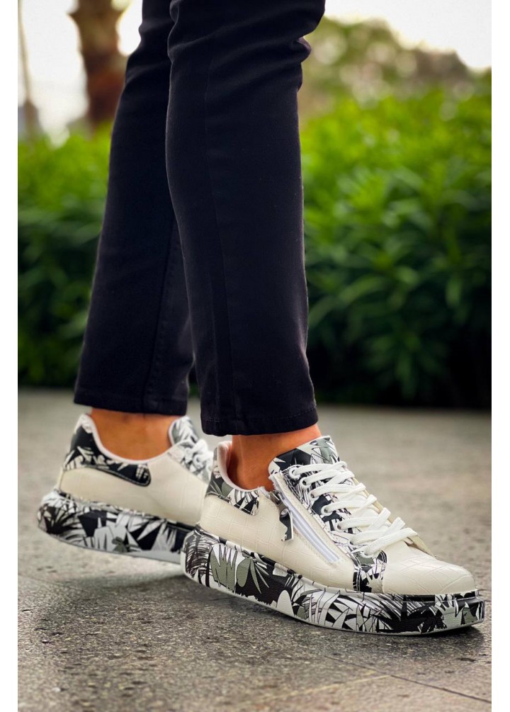 KB-02 Kuback Bağcıklı Crocodile Beyaz Siyah Günlük Erkek Ayakkabı