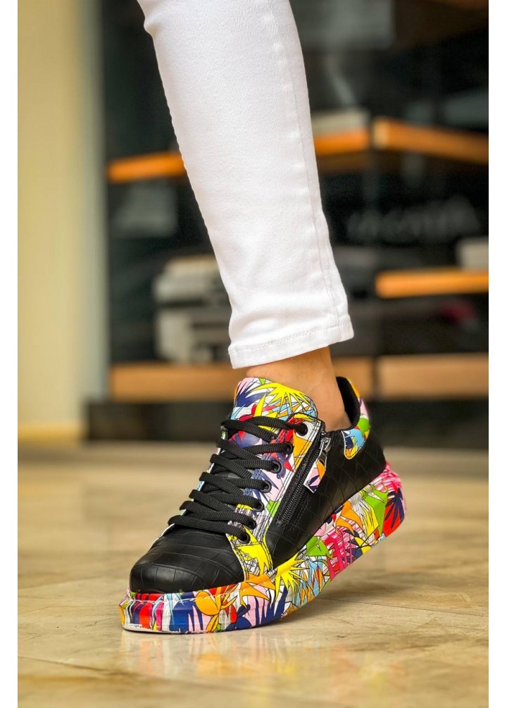 KB-02 Kuback Bağcıklı Crocodile Siyah Kırmızı Günlük Erkek Ayakkabı