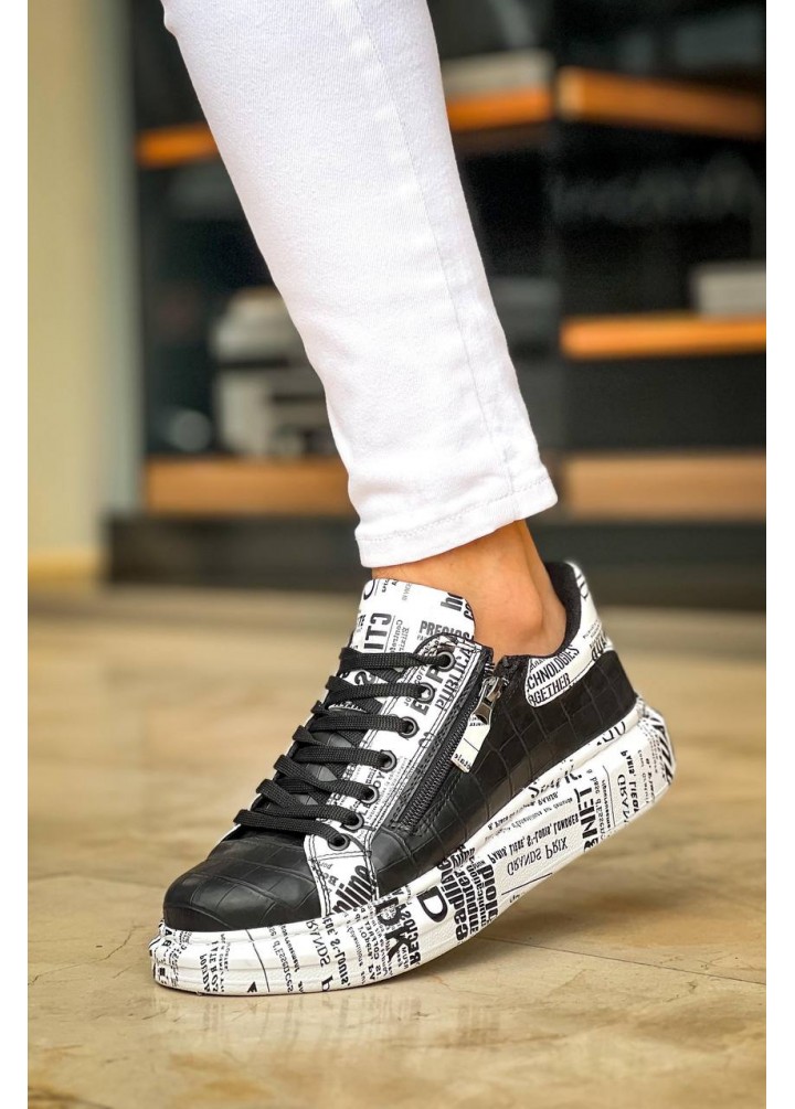 KB-02 Kuback Bağcıklı Crocodile Siyah Gazete Günlük Erkek Ayakkabı
