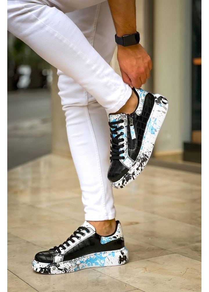 KB-02 Kuback Bağcıklı Crocodile Siyah Mavi Günlük Erkek Ayakkabı