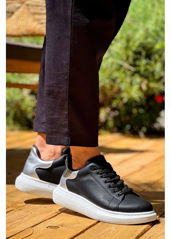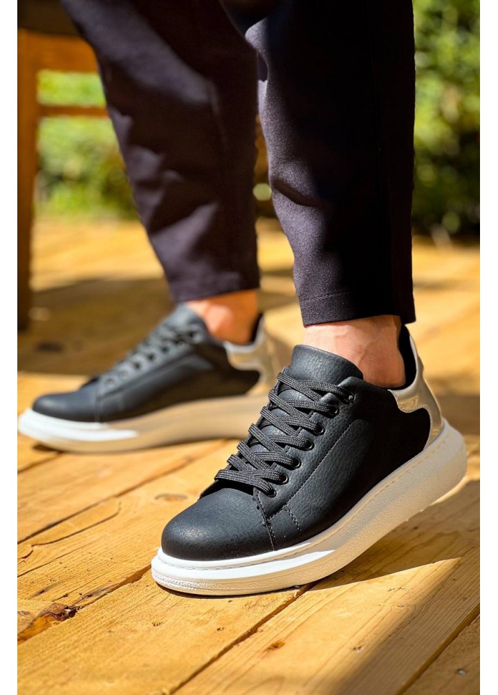 KB-X500 Kuback Siyah Gümüş Yüksek Taban Bağcıklı Günlük Erkek Ayakkabı