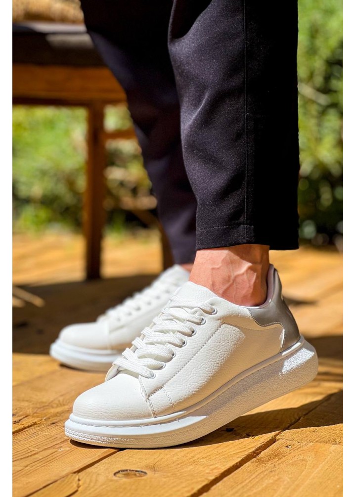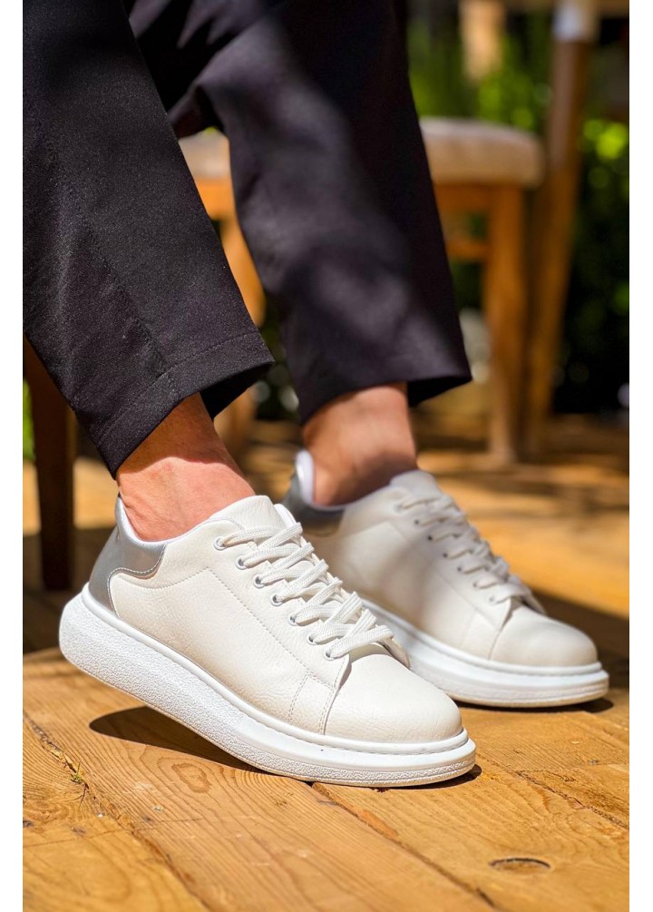 KB-X500 Kuback Beyaz Gümüş Yüksek Taban Bağcıklı Günlük Erkek Ayakkabı
