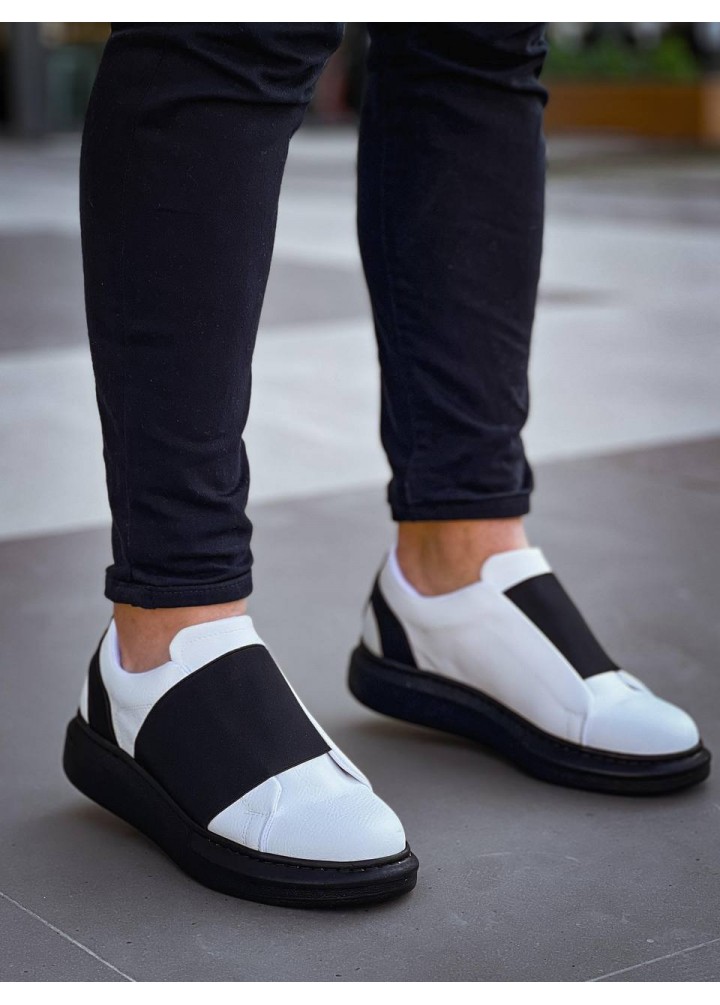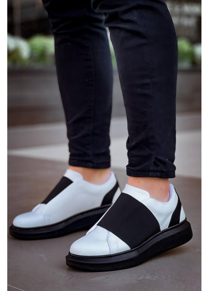 KB-040 Kuback Beyaz Cilt Siyah Yüksek Taban Lastikli Günlük Erkek Ayakkabı