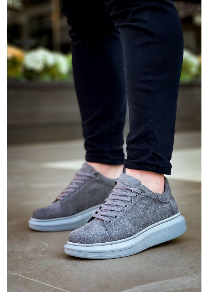 KB-X500 Kuback Gri Süet Yüksek Taban Bağcıklı Günlük Erkek Ayakkabı