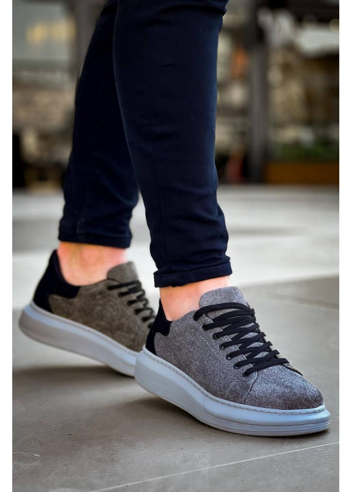KB-X500 Kuback Gri Siyah Süet Yüksek Taban Bağcıklı Günlük Erkek Ayakkabı
