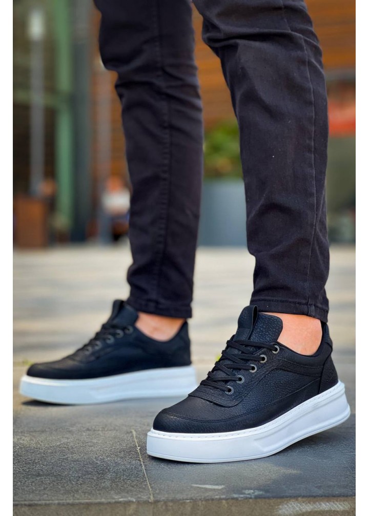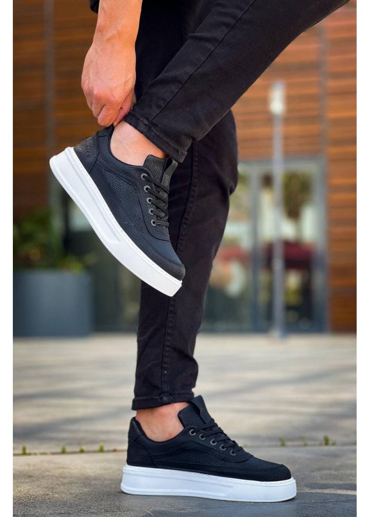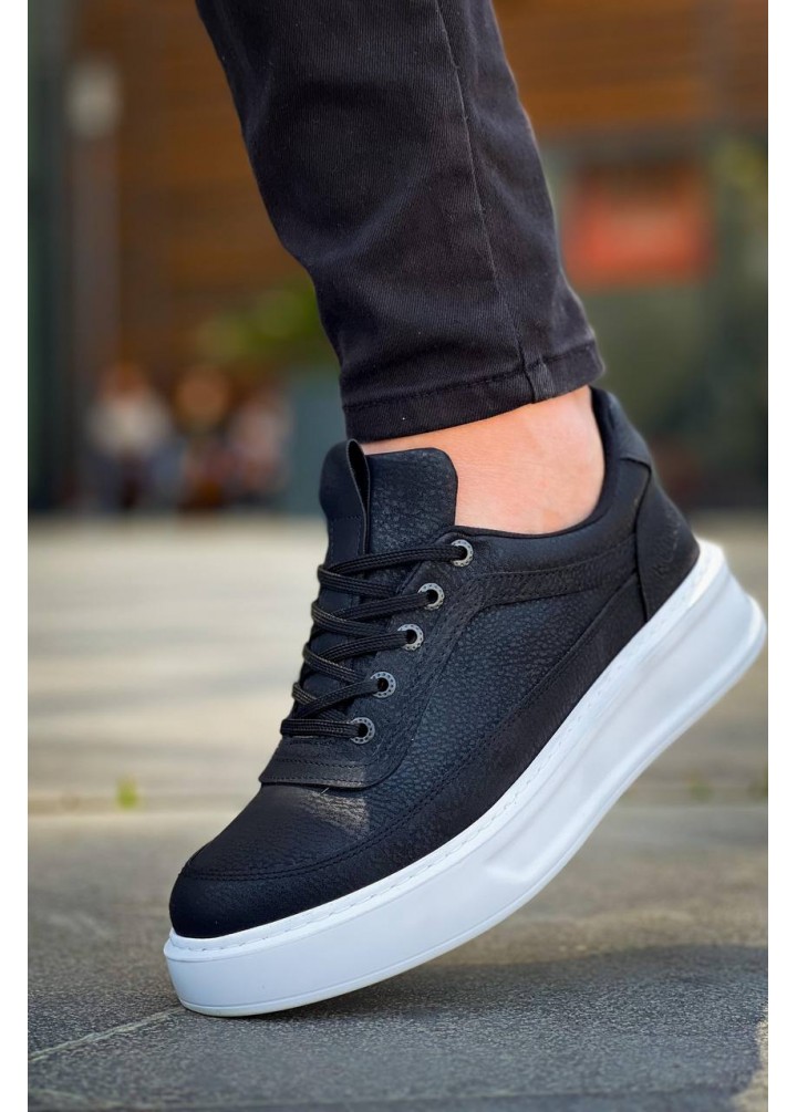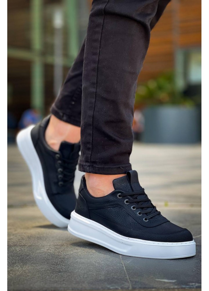 KB-006 Kuback Siyah Cilt Yüksek Taban Bağcıklı Günlük Erkek Ayakkabı