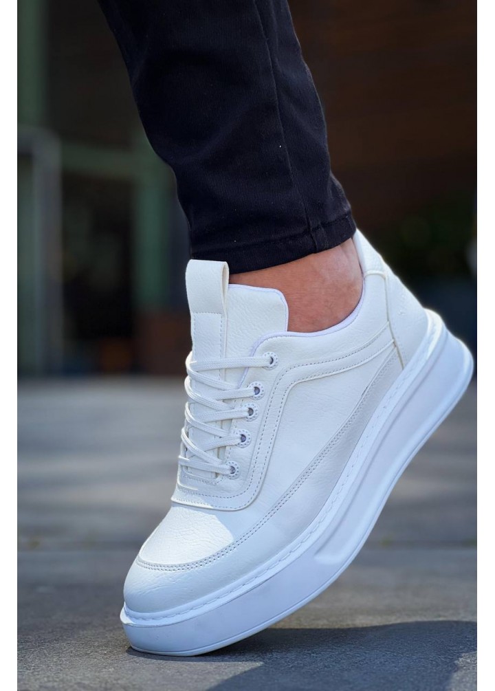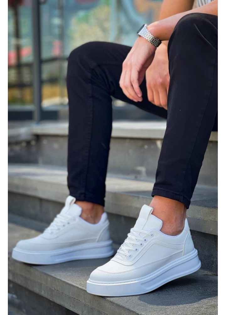 KB-006 Kuback Beyaz Cilt Yüksek Taban Bağcıklı Günlük Erkek Ayakkabı
