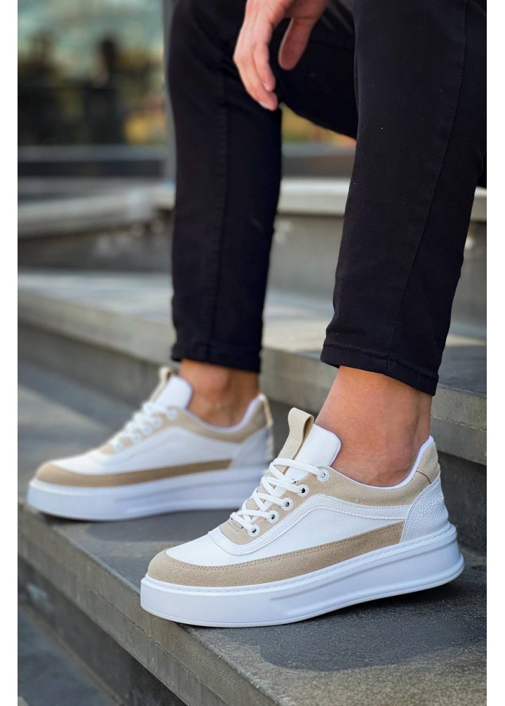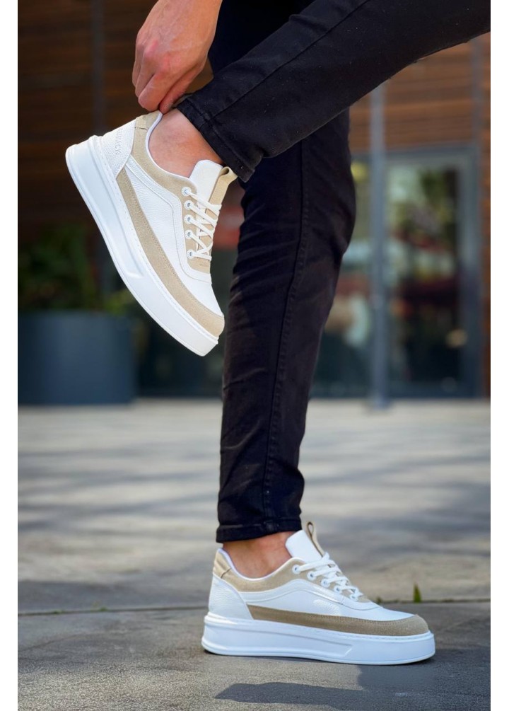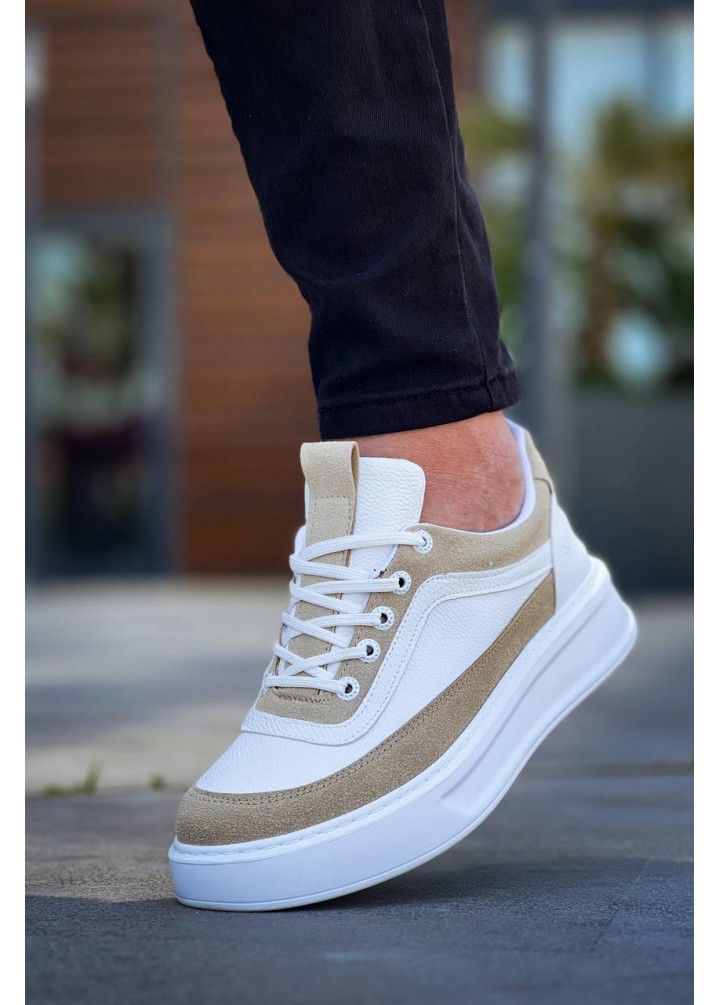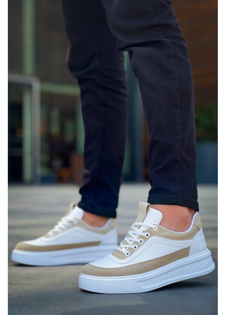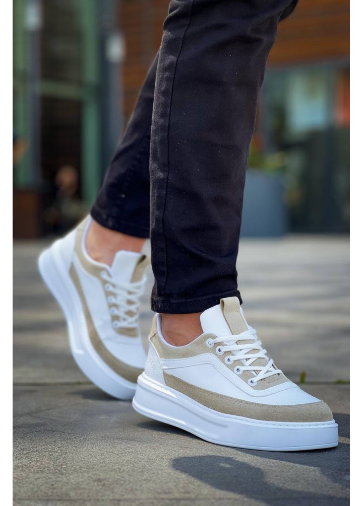 KB-006 Kuback Beyaz Cilt Bej Süet Yüksek Taban Bağcıklı Günlük Erkek Ayakkabı