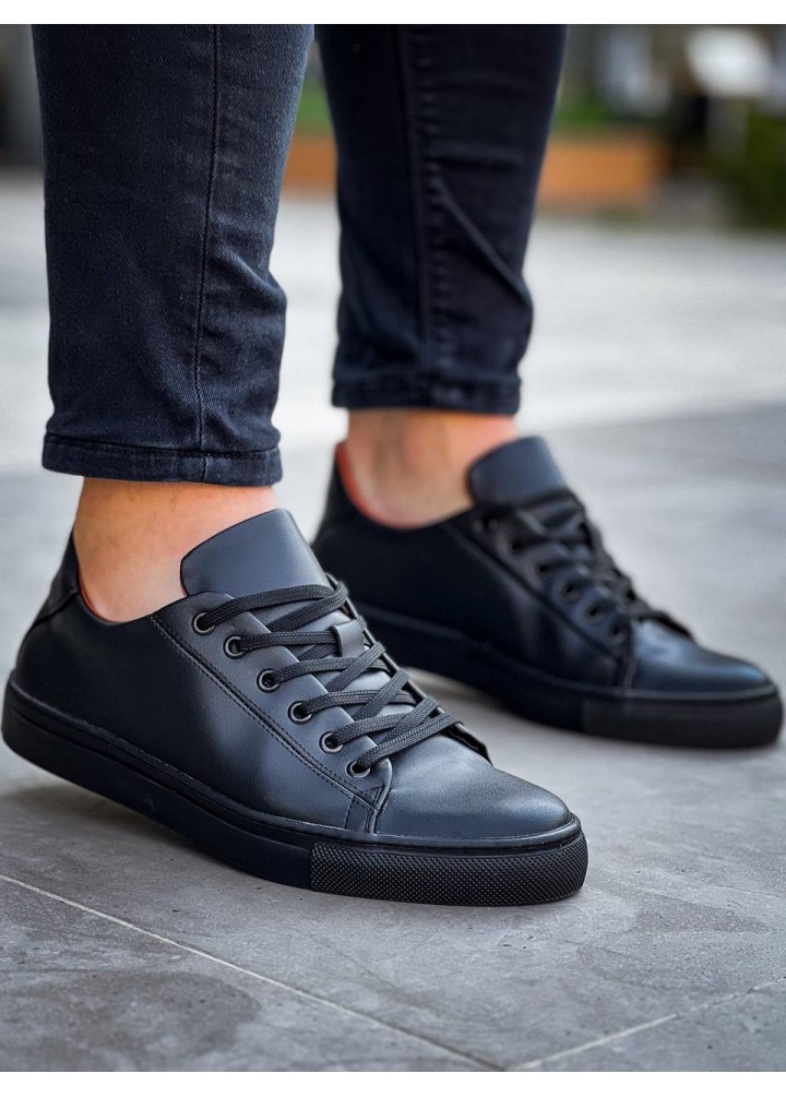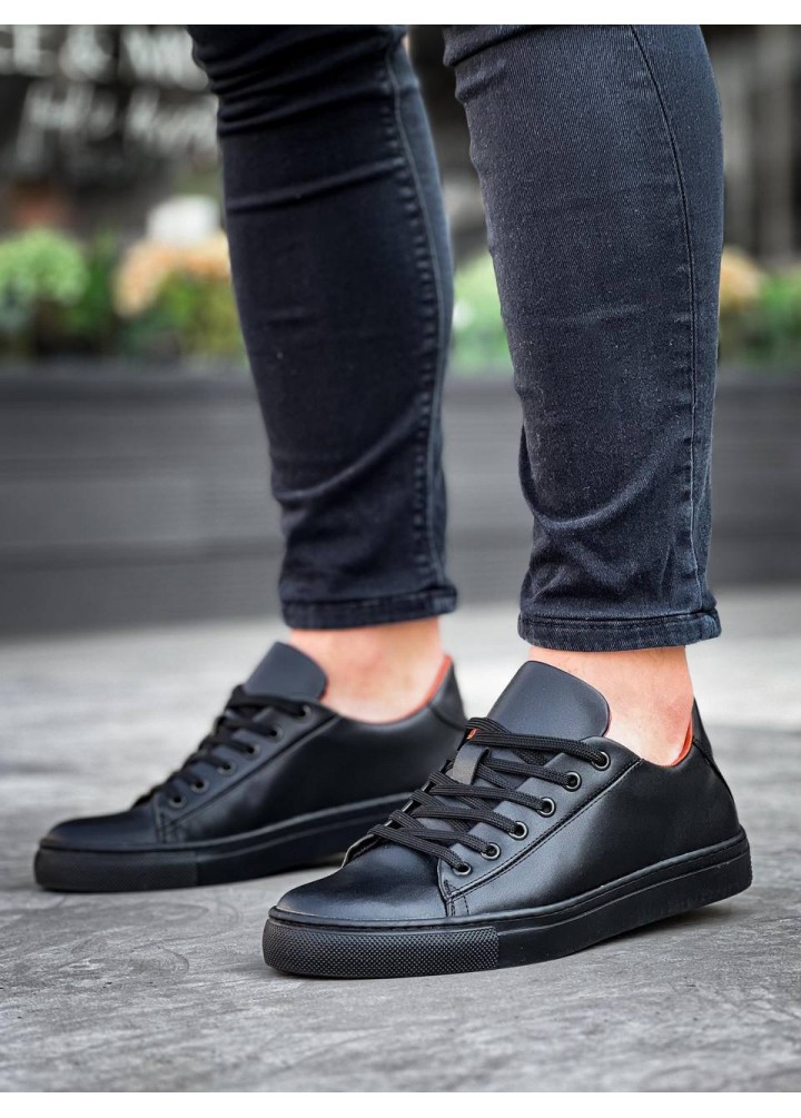 KB-122 Kuback Siyah Cilt Siyah Yüksek Taban Bağcıklı Günlük Erkek Ayakkabı
