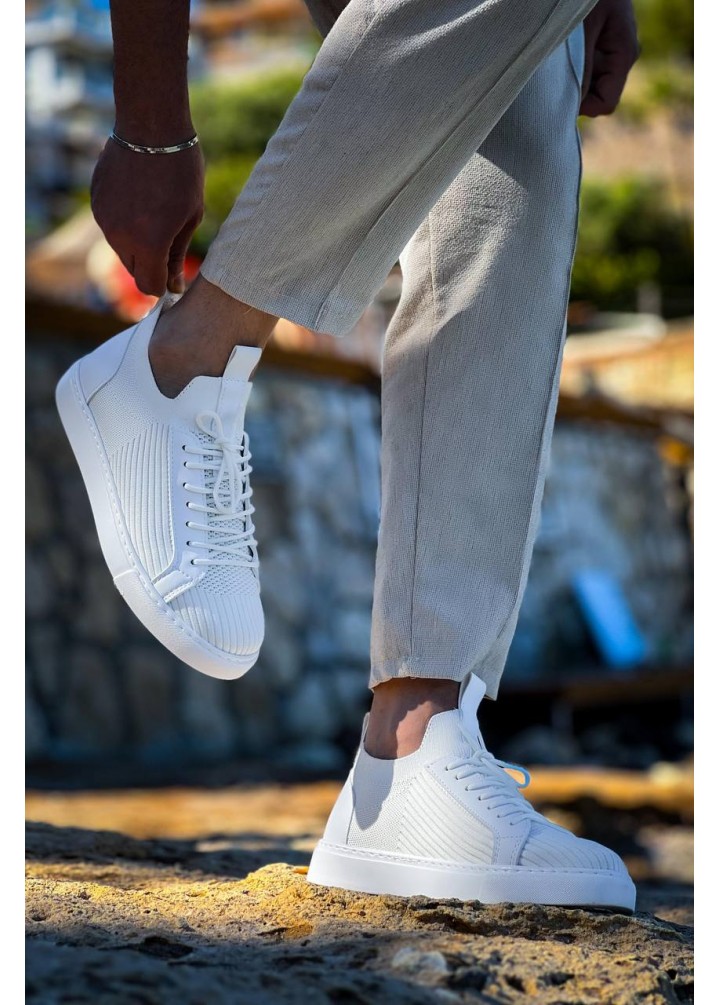 KB-110 Kuback Beyaz Triko Yüksek Taban Bağcıklı Günlük Erkek Ayakkabı