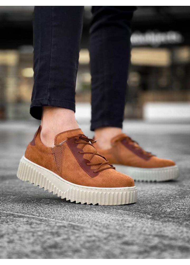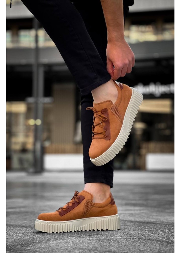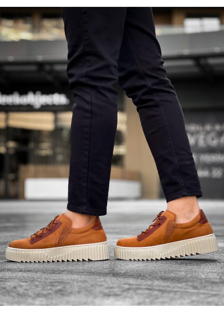KB-X502 Kuback Taba Süet Yüksek Bej Taban Bağcık Detaylı Lastikli Günlük Erkek Ayakkabı