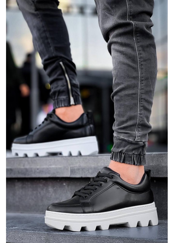 KB-056 Kuback Siyah Cilt Beyaz Yüksek Taban Günlük Spor Ayakkabı