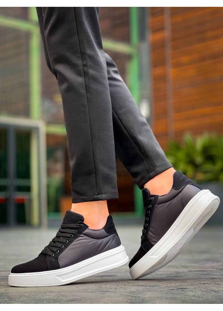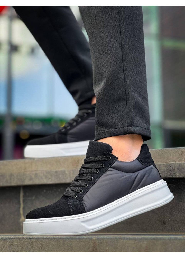 KB-046 Kuback Siyah Paraşüt Beyaz Yüksek Taban Günlük Spor Ayakkabı
