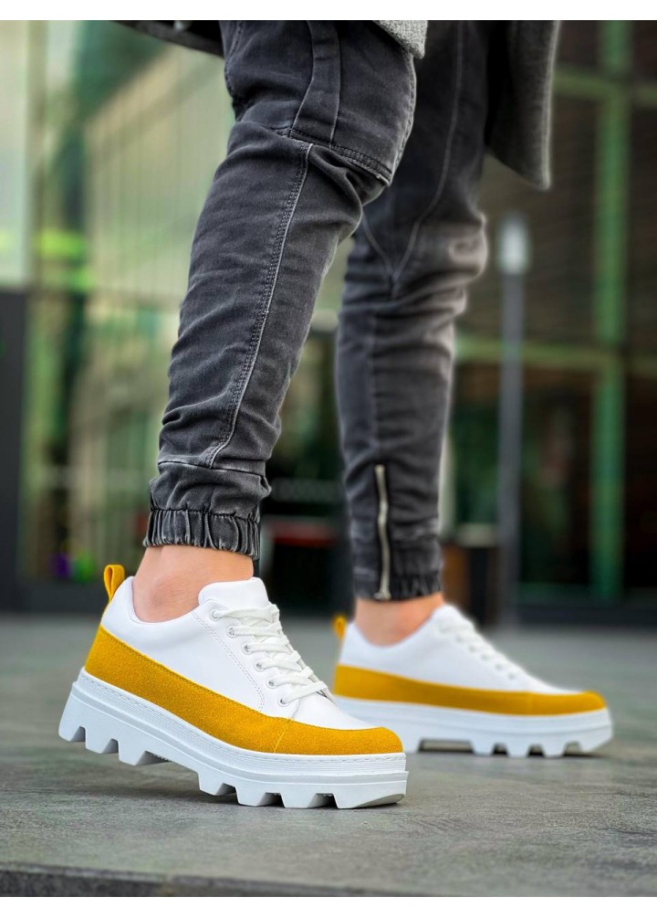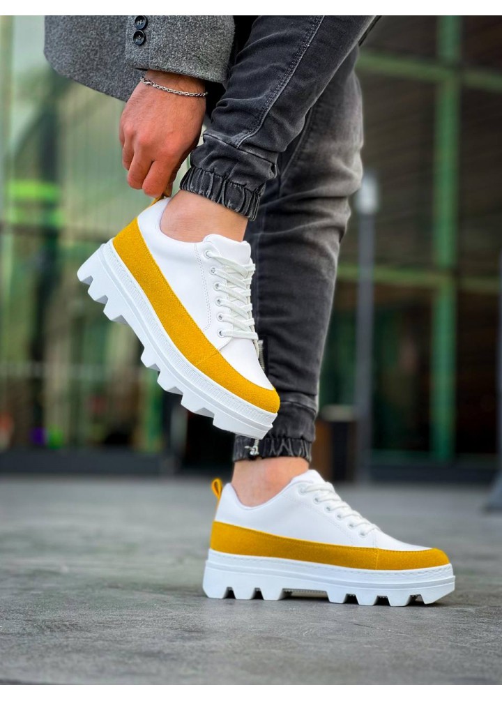 KB-056 Kuback Beyaz Sarı Detaylı Beyaz Yüksek Taban Günlük Spor Ayakkabı