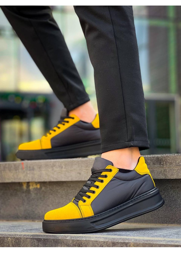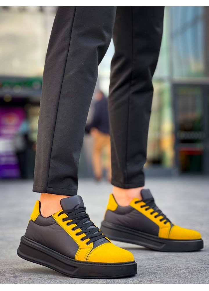 KB-X46 Kuback Siyah Sarı Yüksek Siyah Taban Günlük Spor Ayakkabı