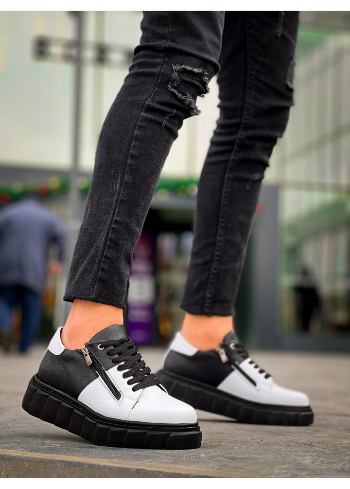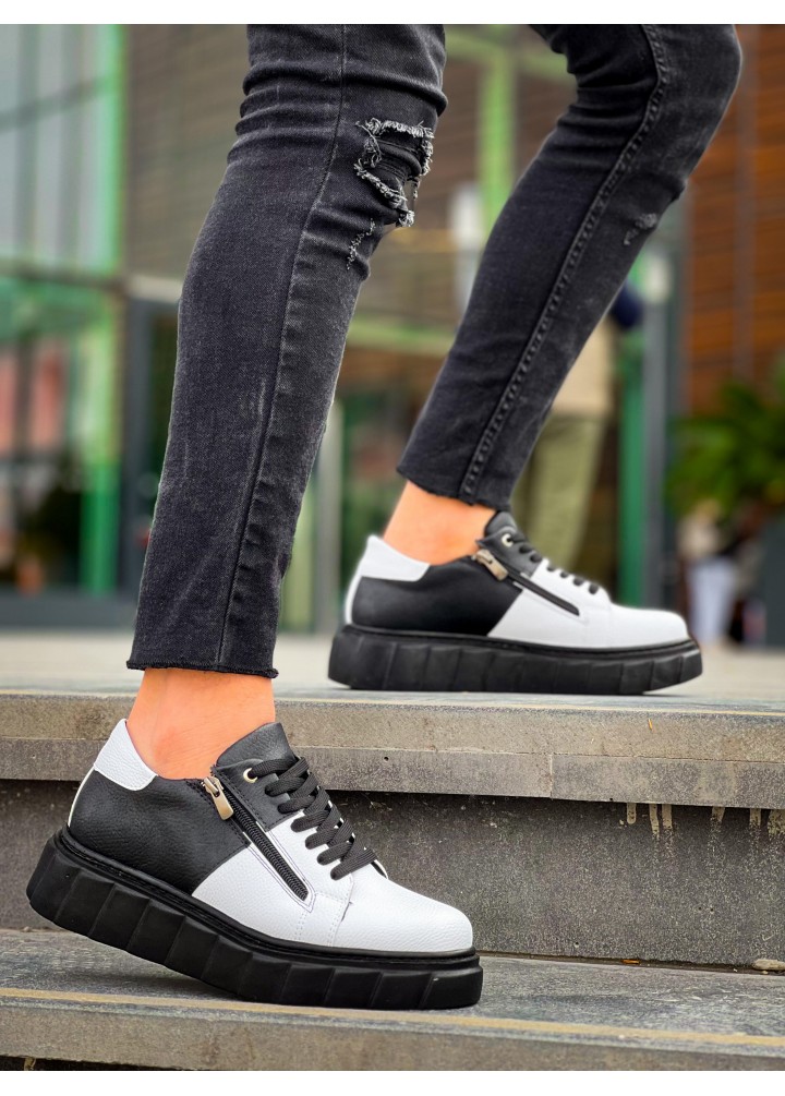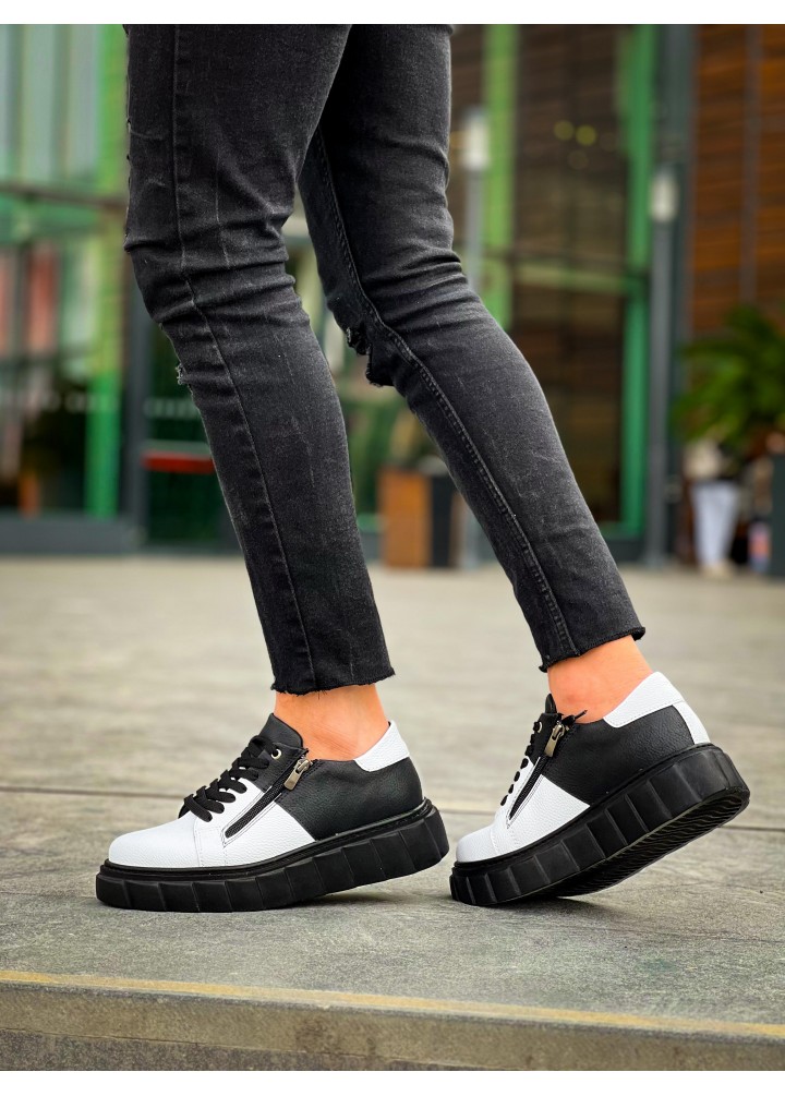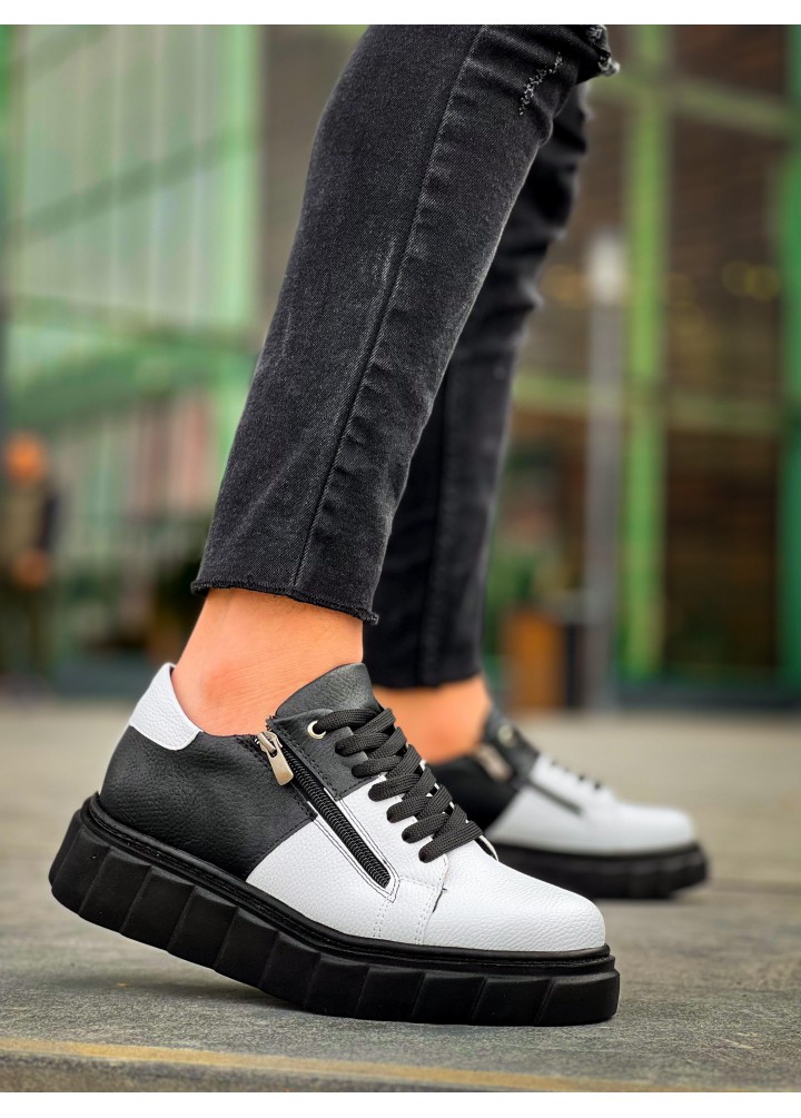 KB-X155 Kuback Beyaz Cilt Siyah Cilt Detaylı Siyah Yüksek Taban Günlük Spor Ayakkabı
