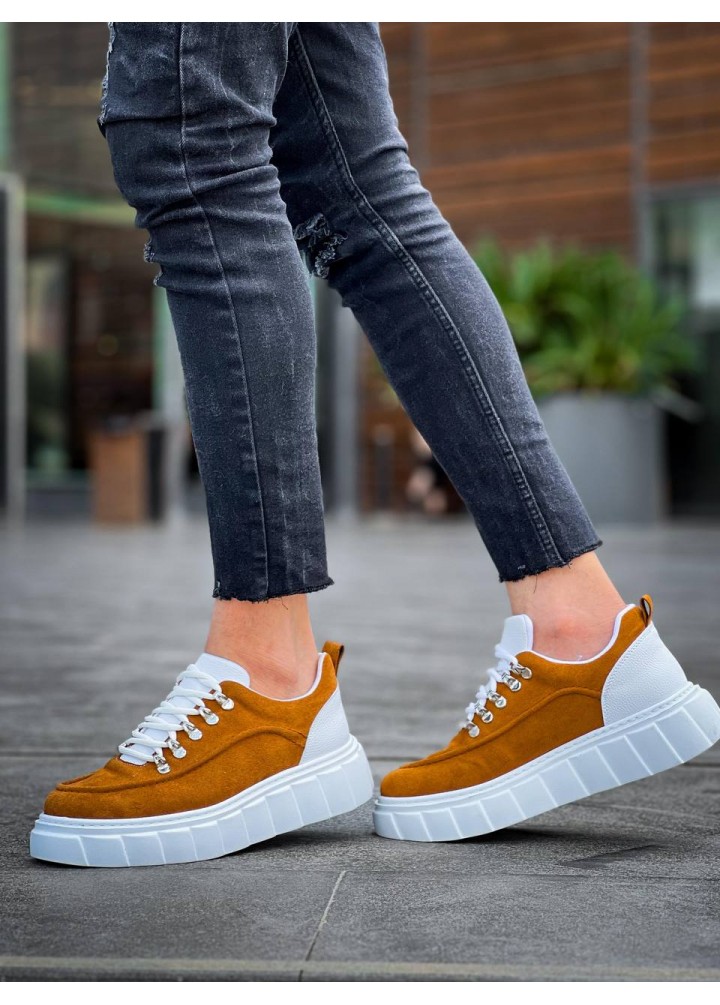 KB-X10 Kuback Taba Süet Beyaz Yüksek Taban Günlük Spor Ayakkabı