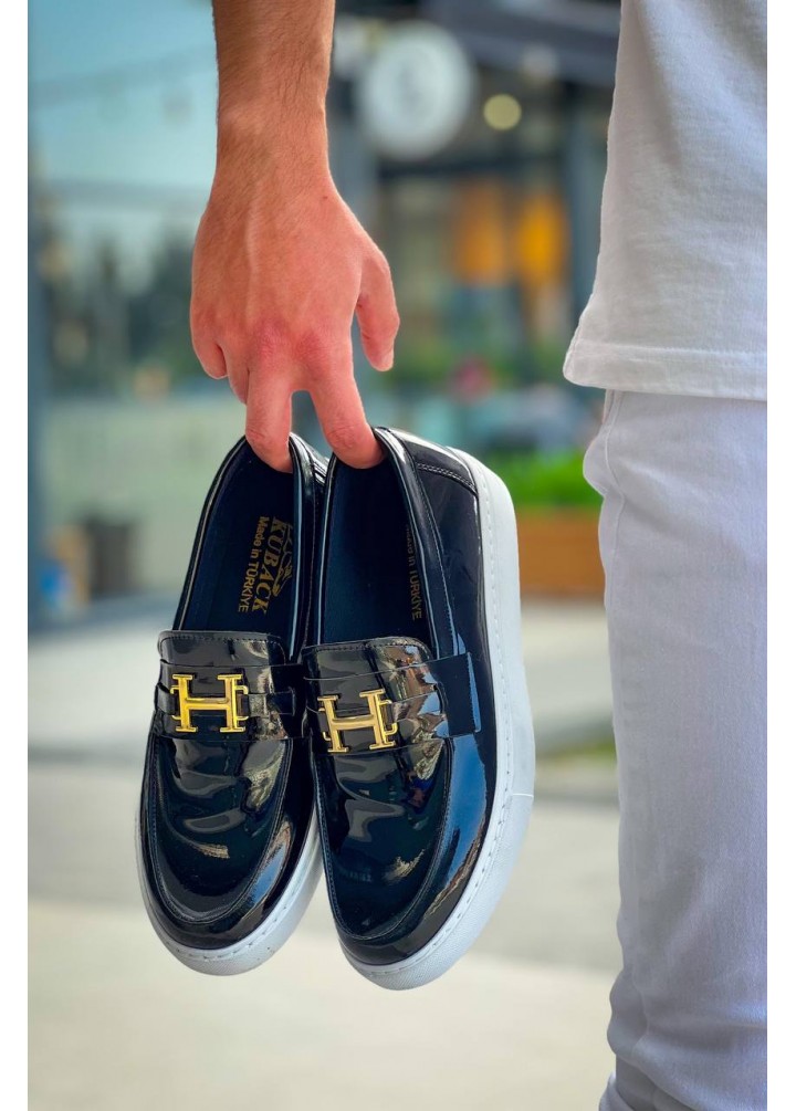 KB-027 Kuback Bağcıksız Siyah Rugan H Günlük Erkek Ayakkabı