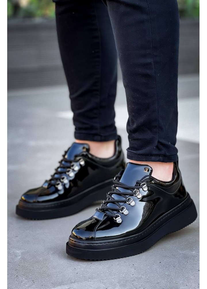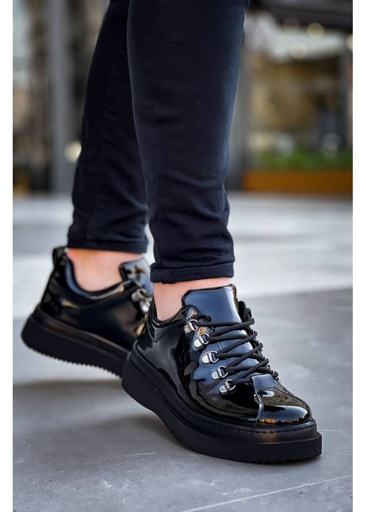 KB-X4 Kuback Siyah Rugan Siyah Yüksek Taban Bağcıklı Günlük Erkek Ayakkabı